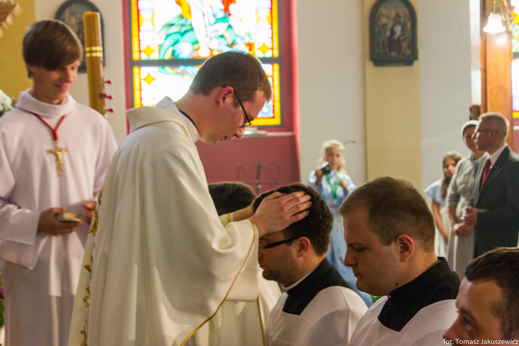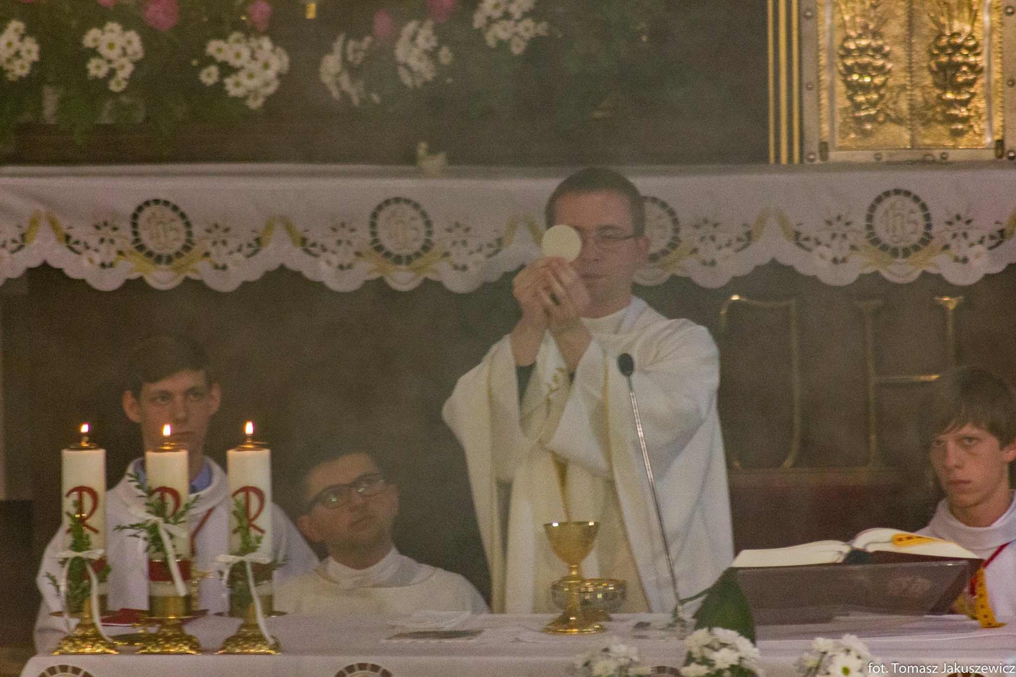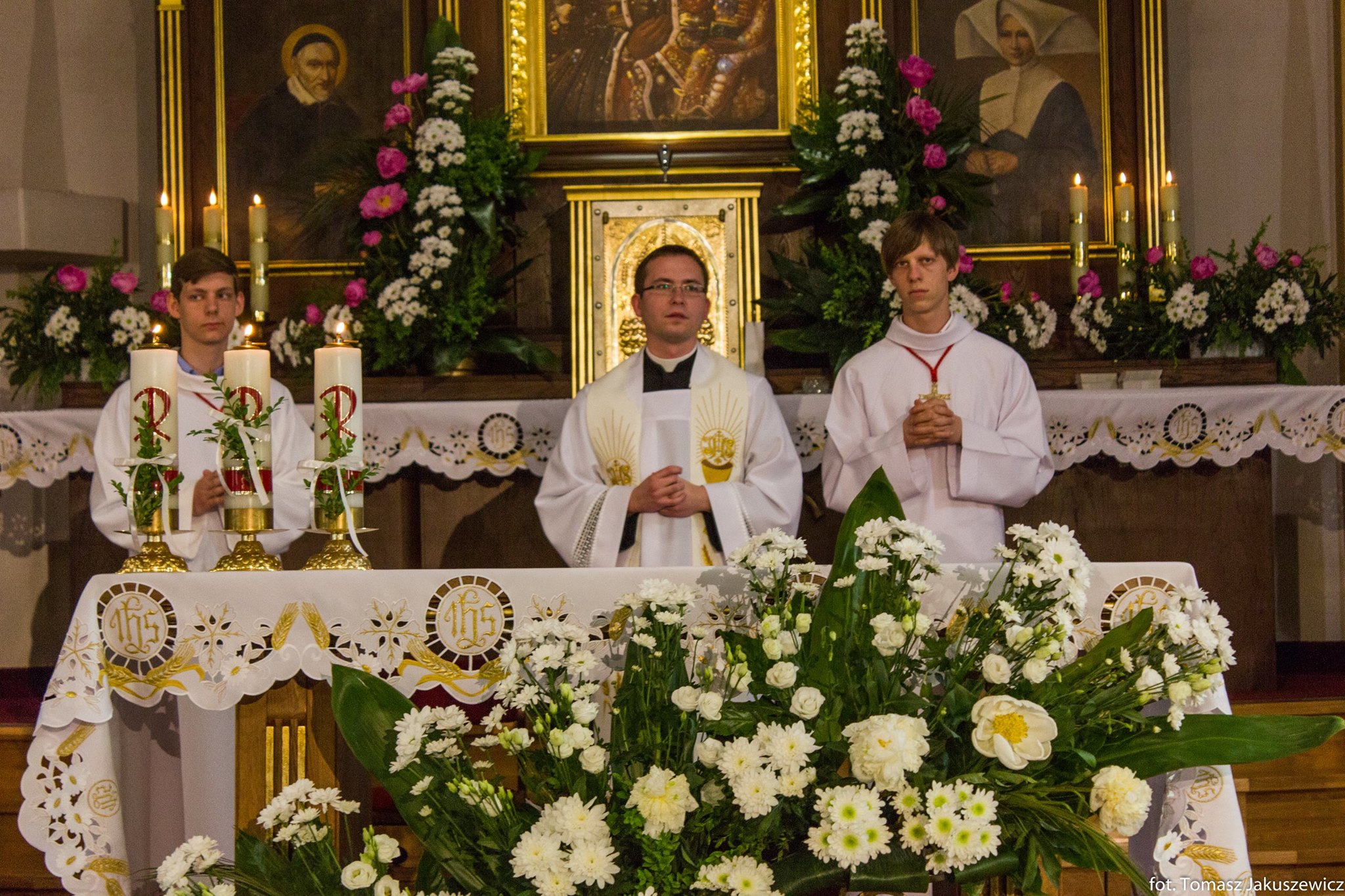 W niedzielę, 12 czerwca, o godz. 12:30 w naszym kościele parafialnym neoprezbiter ks. Piotr Maćkowiak CM odprawił swoją mszę prymicyjną. Była to jego pierwsza Eucharystia sprawowana w naszej świątyni, której przewodniczył. Uroczystość rozpoczęła się procesją z placu przy kościele, która wprowadziła ks. Piotra do świątyni. Po krótkiej modlitwie został on uroczyście powitany przez ks. proboszcza Tomasza Partykę CM, przedstawicieli grup parafialnych oraz wiernych. Podczas mszy świętej dziękowaliśmy Bogu za dar powołania nowego kapłana. Na zakończenie ks. Piotr udzielił wszystkim specjalnego błogosławieństwa.